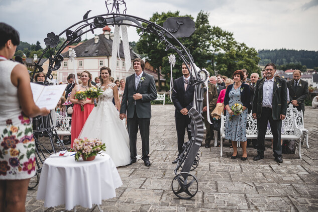 - pokud se snoubenci rozhodnou pro květinovou výzdobu (zejména zdobení oblouku na terasách) jsou povinni toto sdělit správě zámku, včetně jména a kontaktu na dodavatele, nejpozději týden před plánovaným termínem obřadu